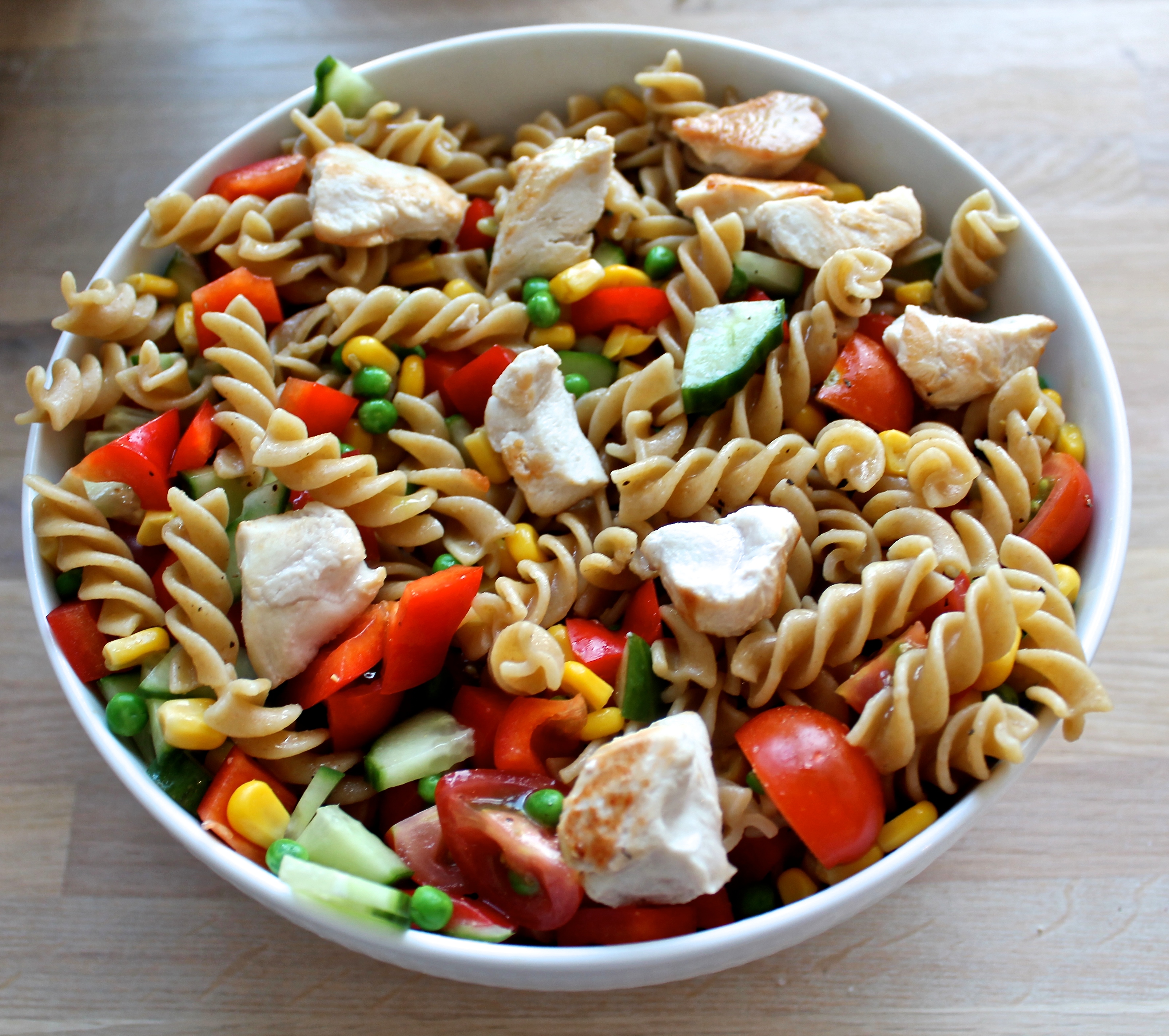 Kyllinge pastasalat er en sikker vinder! Lav den til aftensmad eller spis den til frokost. Det er nemt, hurtigt og sundt. Jeg håber du er ligeså vild med den som jeg er! 😉 Antal: 4 personer Tid: 40 minutter Redskaber: Skærebræt Urtekniv Si Deciliterbæger Spiseske Teske Stor skål Det skal du bruge: 2 kyllingebryst 1… Læs mere KYLLINGE PASTASALAT