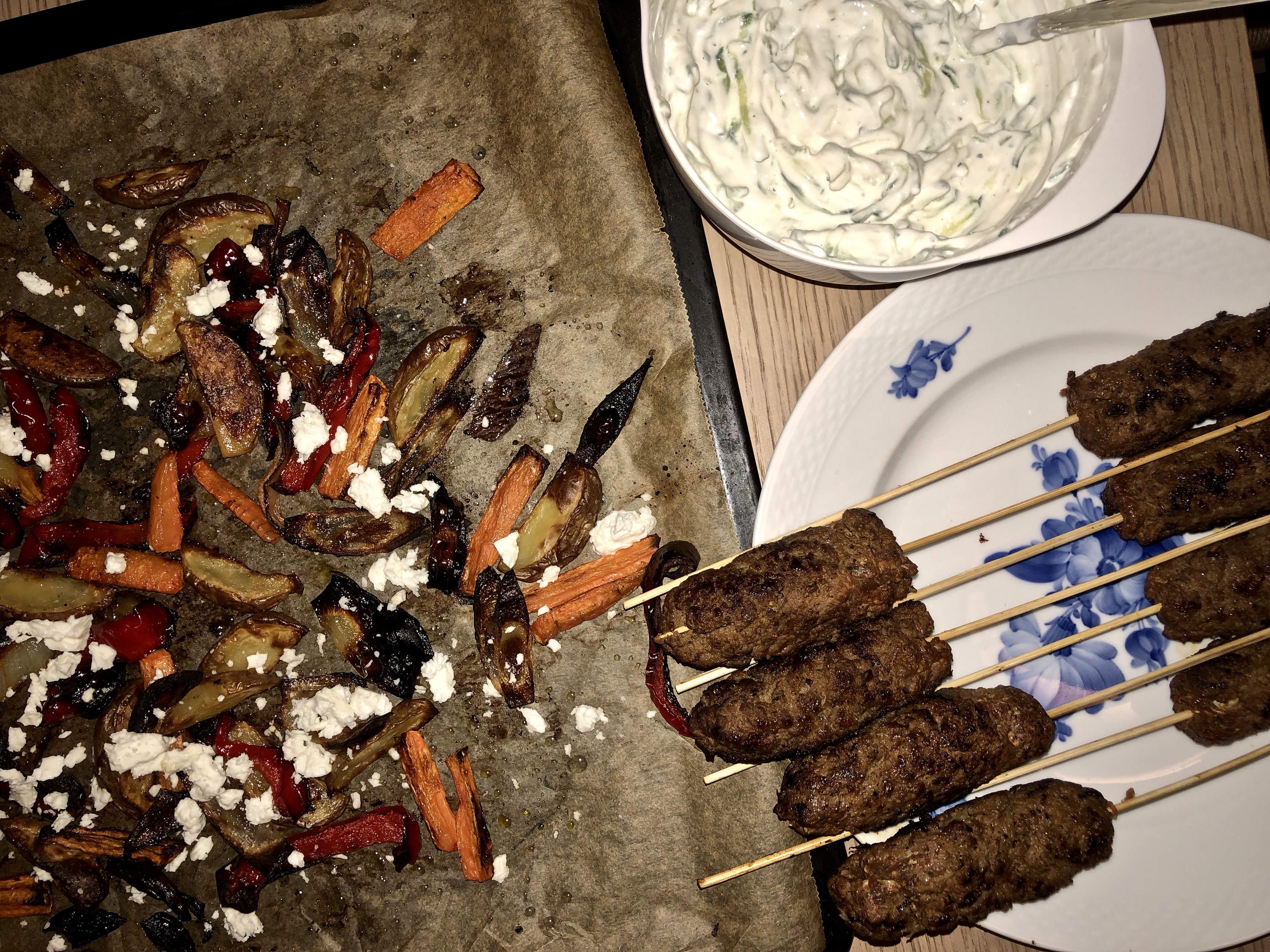 Græske oksespyd med ovnbagte grøntsager og tzatziki er en nem, sund og virkelig lækker aftensmad ret, som hitter hos de fleste 😀 Prøv det – du vil ikke fortryde det 😉 Antal: 4 personer Tid: 30 minutter (+30 minutter i ovnen) Redskaber: Spiseske (spsk) Teske (tsk) Plasticskål Grydeske Skål Skærebræt Urtekniv 8-10 træspyd Fad 2… Læs mere GRÆSKE OKSESPYD MED OVNBAGTE GRØNTSAGER OG TZATZIKI