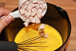 - Læg dem ovenpå æggeblandingen i det ildfaste fad