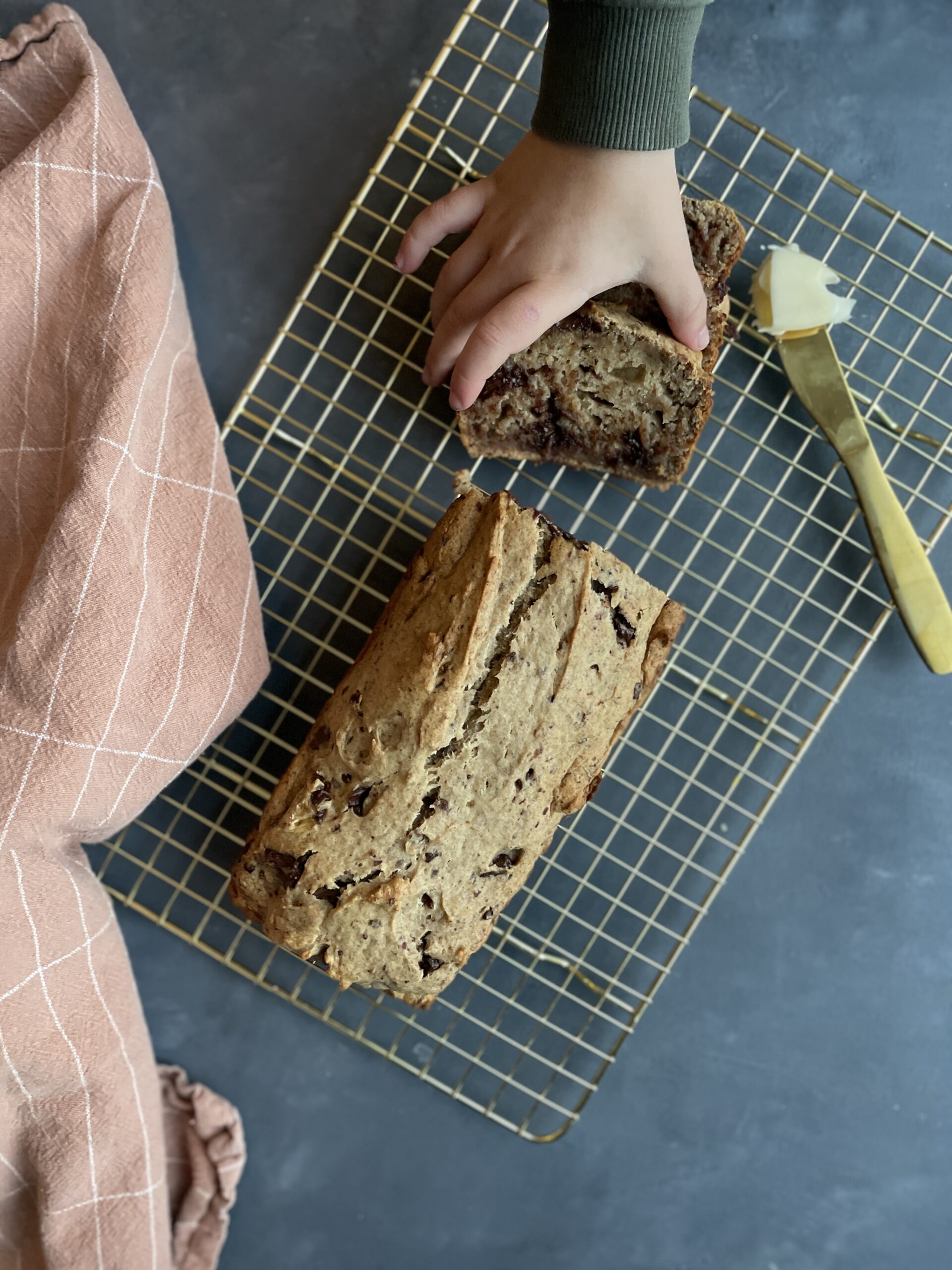 Når bananbrødet er færdigt, kan du lade det køle lidt af, inden du servere det med smør – det smager nemlig lækkert! 😛