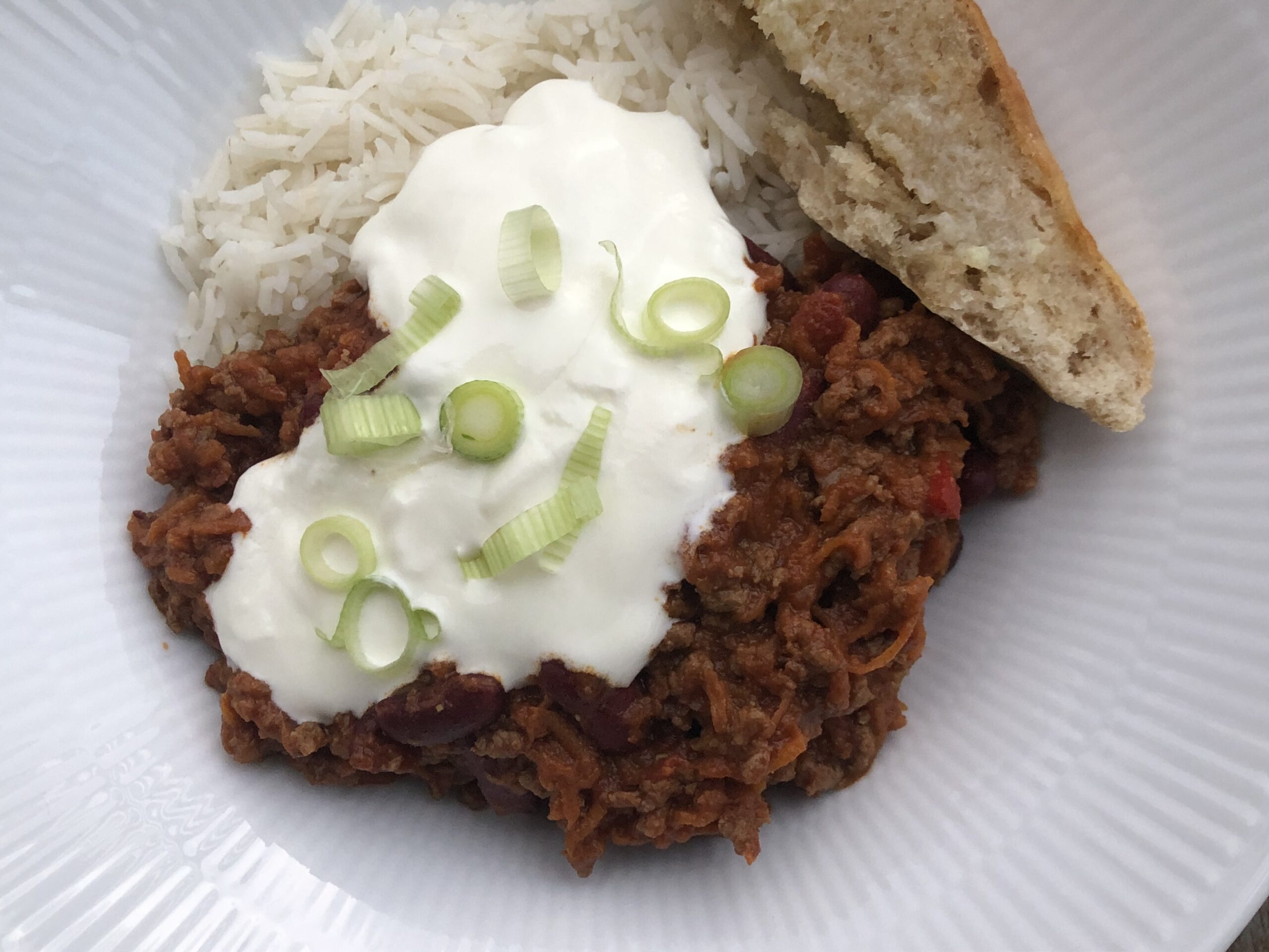 Chili con carne – det er hurtigt og nemt at lave til aftensmaden! Og har man god tid, kan den stå og simre i flere timer. Så smager den nemlig endnu bedre! 🙂