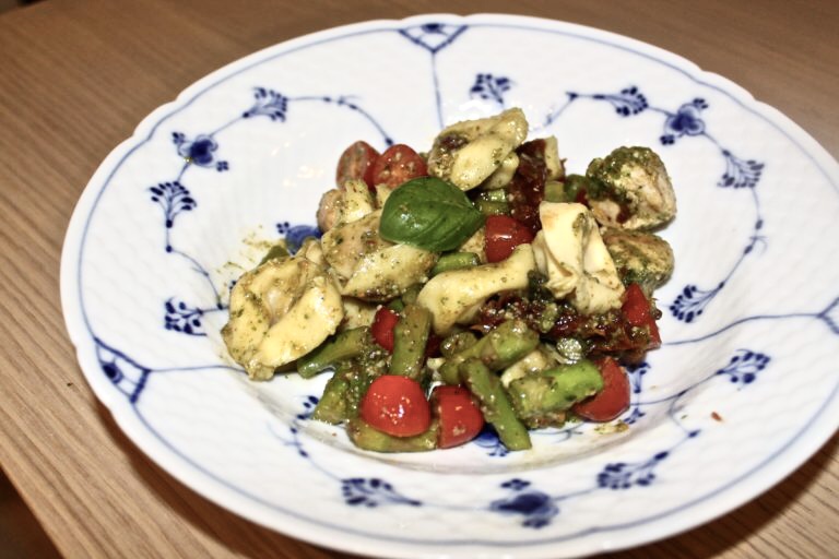 One pan pesto, kylling, tortellini er en nem hverdags ret, som bare smager virkelig godt. Man kan selv bestemme hvor meget man vil gøre ud af det. Man kan tage den nemme løsning og købe pesto og soltørrede tomater i supermarkedet, eller man kan lave det selv 🙂 Selvom det købes i supermarkedet, smager det altså rigtig godt 😛