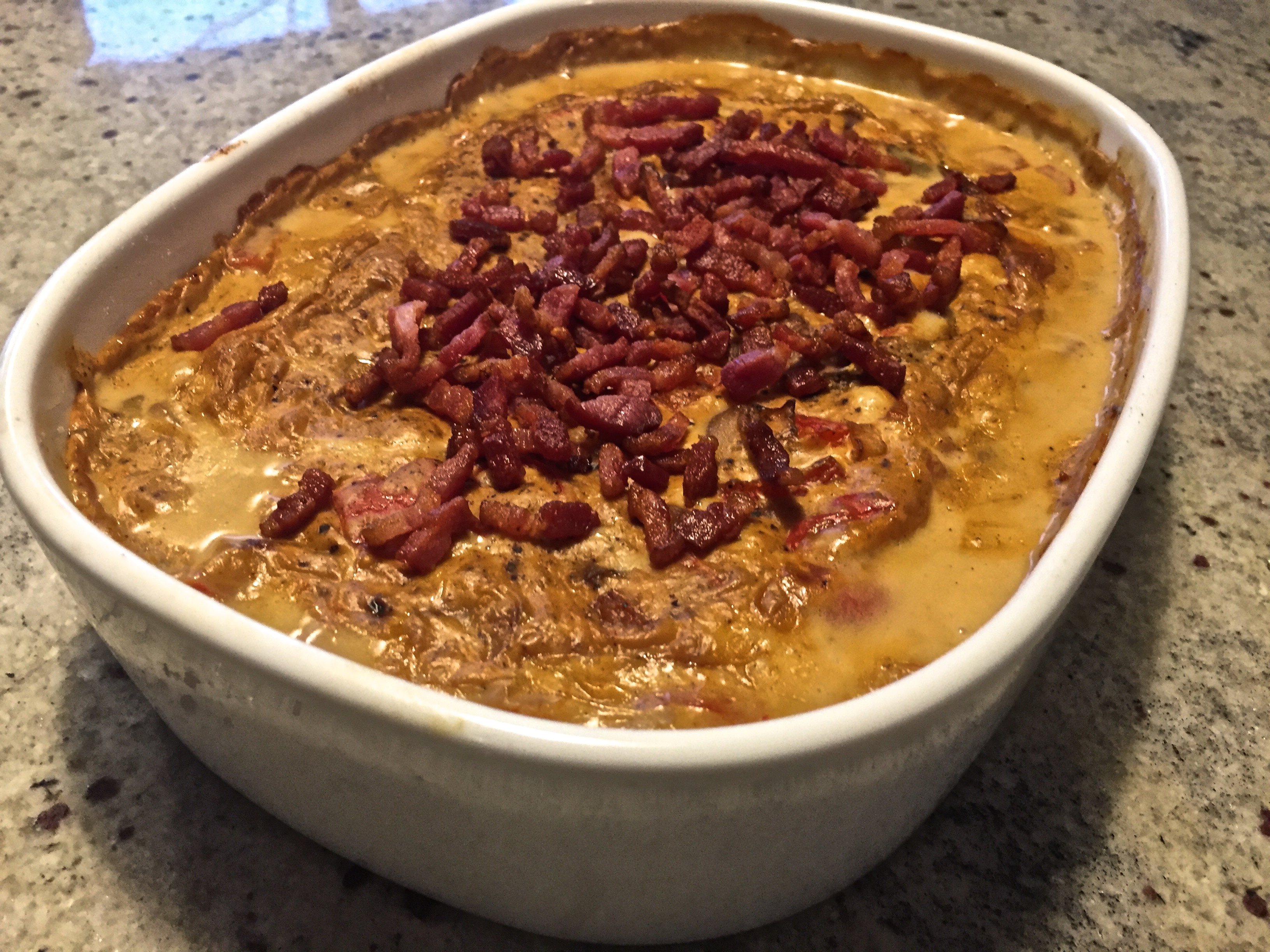 Antal: 4 personer Arbejdstid: 15-20 minutterTid i alt: 45-50 minutter Redskaber Det skal du bruge Stegepande Paletkniv Køkkenrulle Tallerken Urtekniv Skærebræt Teske Deciliterbæger Ovnfast fad 4-6 koteletter (1 pakke) (1 pakke bacon i tern) 1 løg 1 rød peberfrugt 2 tsk paprika 4 dl fløde (jeg brugte Oma’s 4%) 2 dl pikantost (1 bæger) 1… Læs mere KOTELETTER I FAD MED PIKANTOST