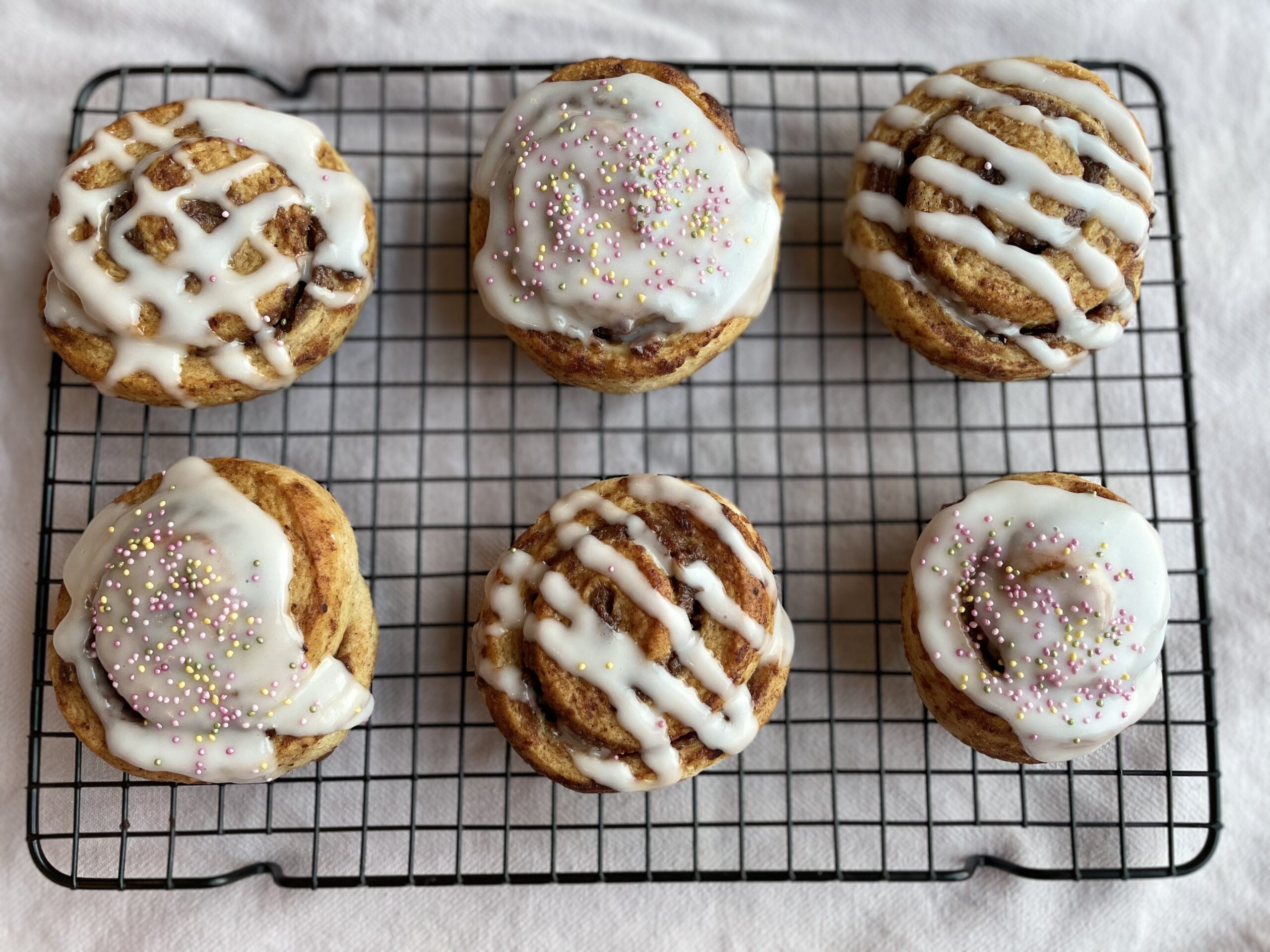 Antal: 12-15 Arbejdstid: 30 minutter Hæve-/bagetid: 2,5 timer Kanelsnegle! Lækre, uden tilsat sukker og nemme at lave 😛 Hvis du ikke får spist dem allesammen, så kan du altid fryse dem ned og spise dem på et andet tidspunkt! 😎 Redskaber Det skal du bruge Stor skål Grydeske Deciliterbæger (dl) Spiseske (spsk) Teske (tsk) Pensel … Læs mere KANELSNEGLE